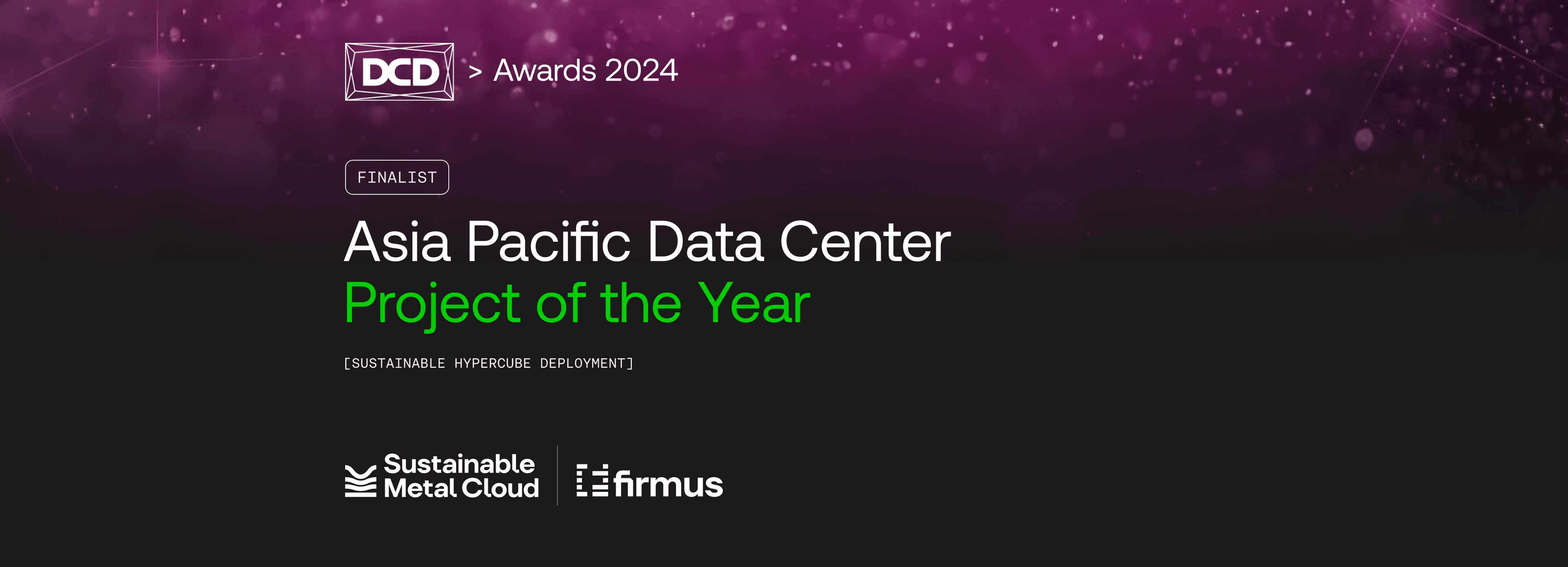 We’re beyond thrilled to announce the Firmus infrastructure that powers Sustainable Metal Cloud (SMC) has been named a finalist for the Asia Pacific Data Center Project of the Year award! This nomination is a testament to our commitment to reshaping cloud infrastructure with cutting-edge, sustainable technology.